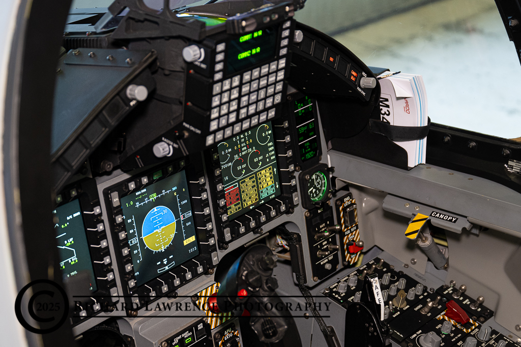 Leonardo has made a stop in Ottawa promoting this system and their presentation was broken into three main areas: Leonardo as a company, the International Flight Training School, and the M-346 aircraft with its Embedded Tactical Training System (ETTS). Unfortunately, their presentation was on October 22nd and it turned out to be a bad day for flight ops, which they had also hoped to do. I got there early and was able to go into the hanger and take some pictures and then the M-346 was hauled out to the ramp to do an engine run-up in anticipation of flying after the formal presentation. Again, because I was there early (military training never fails), I was able to go out onto the ramp and take a few static pictures of getting the plane ready and the engine start before it was hauled back into the hanger for the start of the formal presentation.